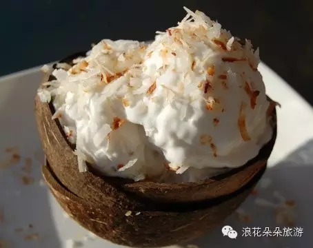 普吉岛人气冰淇淋,雪糕球一般被乘在椰子壳里,下面垫有椰肉,撒上粉条。吃起来椰奶味很足,十分清爽。
