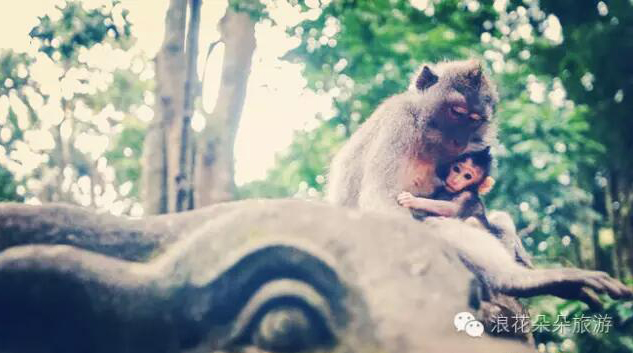 第三站是圣猴深林公园,巴厘岛的猕猴也算是一大特色,尤其是这一群生活在寺庙内的猴子们,因此也被称为圣猴,这些猴子一点也不胆怯,走到哪里都有他们的身影,去圣猴深林公园主要看猴子数毛、猴子抢香蕉、抓虱子或跳蚤、猴子发呆卖萌等等,猴子的生活在你面前展露无遗,印象最深刻的是母猴抱着自己的孩子,那种温柔慈悲的神情,很是感动。如果想和猴子合照,工作人员会递给你食物喂猴子,这样就可以和猴子更亲密的接触了。
