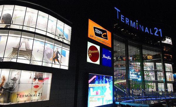 Terminal 21是一座大型综合购物商场。整个商场以机场航站楼为概念,每一层则配以不同国家城市的特色,仿佛踏入不同城市中旅行。每层的装修风格和厕所也按照每个城市的风格设计的。