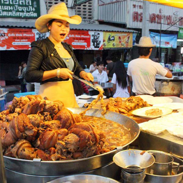 泰国到处都能吃到猪脚饭,推荐凤飞飞纯粹是来花痴女老板的!!!30B一份猪脚饭还有溏心蛋,你还能要求什么呢。。。比起猪脚更爱溏心蛋啊~