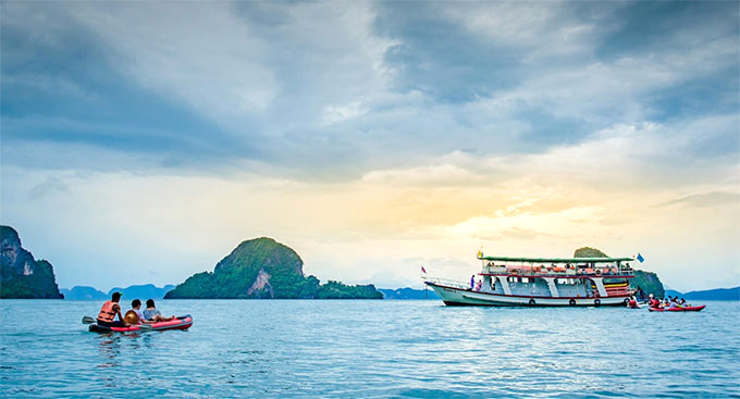 前往攀牙湾的船只,有快艇、大船也有极具特色的长尾船。行程不仅有一日游,日落游,星光游,更有攀牙湾漂流和长尾船骑大象,选择性比较大。