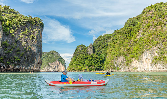 【适合人群】喜欢平静的海域,独特的海上山石,对原始山洞或皮划艇感兴趣,特别适合携带年龄较大的老年人出海(其他海岛,超过70岁以上的老人是不允许出海的,只有攀牙湾可以哦)