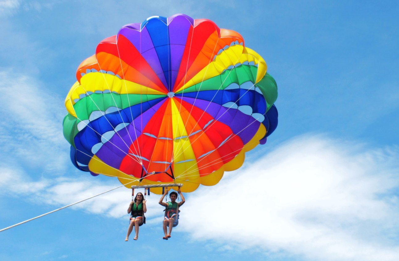 珊瑚岛,最常见的水上项目---拖拽伞,也是最受欢迎的项目,可以单人玩,也可以双人一起玩